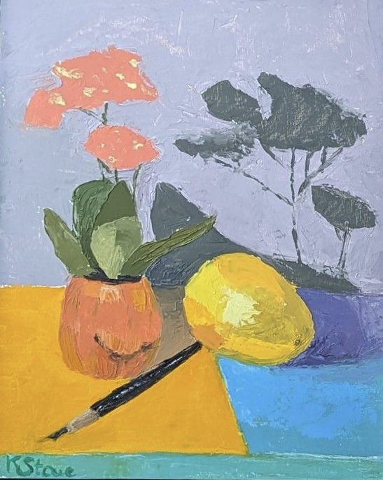 Caroline Orrick. Three Lemons. Oil. 8″ x 8″. $300. Caroline Orrick. Ladder, O’Keeffe House. Oil. 9″ x 12″. $350. Caroline Orrick. Light House, Montara Beach. Oil. 9″ x 12″. $350. Caroline Orrick. Flowers and Dining Room Table. Oil. 8: x 8″. $300. Caroline Orrick. Sandia Mts, Albuquerque, NM. Oil. 9″ x 12″. $350. Caroline Orrick. Eucalyptus Tree, Ojai. Oil. 9″ x 12″. $350. Caroline Orrick. Copper Canyon, Ojai. Oil. 9″ x 12″. $350. Caroline Orrick, Bolinas Lagoon and Red Boat. Oil. 9″ x 12″. $350. Caroline Orrick. Olive Trees, Umbria. Oil. 8″ x 8″. $300.