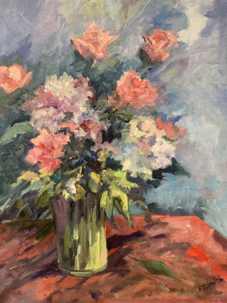 Olympic Swimmers. Oil. 11 x 14. $300 Framed.Oranges. Oil. 20 x 16. $375 Framed.Morning Glory II. Oil. 24 x 18. $400, Framed.Mirror Image. Oil. 16 x 20. $375 Framed.Homestead Farm Vista. Oil. 14 x11. SOLD Framed.Great Falls. Oil. 24 x 12. SOLD gallery wrapped.Potter’s Shed. Oil on Birch Board. 10×12.5. Unframed $225.Daybreak. Oil. 11×14. $300. Framed.Art in the Garden. Oil. 16 x 20. $375. Framed.Bethesda Beat. Oil. 16 x 20. $375 Framed.MUSIC FOR THE SOUL. Oil. 11×14. $300.Framed.Afternoon Delight. Oil. 14 x 11. $300 Framed.HIBISCUS. Oil. 14 x 11. $300. FramedAlong the C & O Canal. Oil. 11 x 14. $300. FramedAzaleas. Oil. 11 x 14 $300, framed.Looking Up. Oil. 16 x 20. SOLD FramedBarge on the C & O Canal. Oil. 14 x 11. $300, Framed.Magnolia Blossoms Oil. 8 x 10. $250 Framed.Birches. Oil. 16 x 20. $375.Snow Pines. Oil. 11 x 14. $300, Framed.Canal Run. Oil. 8 x 10. $250. Framed.Biloxi Beach . Oil. 14 x 11. $300.The Cottage. Oil. 14 x11. $300. FramedDifficult Run. Oil 16 x 20. $375, Framed.Hanging Basket. Oil. 9 x 12. $275, framed.Floral Fantasy. Oil. 16 x 20. $375. FramedNOR’EASTER. Oil. 14 x 11 $300. FramedOverlook at Deep Creek Lake. Oil. 20 x 16 $375, Framed.Potomac Waterfall. Oil. 11 x 14 $300, framed.ROSES. Oil. 11 x 14. $300. Framed.Roses. Oil. 16 x 20. $375, Framed.Seagull’s Flight. Oil. 20 x 16 $375, Framed.Grazing Sheep. Oil. 20 x16. $375 FramedStill Life with Oranges. Oil. 14 x 11. $300, Framed.Summer at Glen Echo. Oil. 14 x 11. $300 FramedWinter Mood. Oil. 11 x 14. $300, framed.Winter Woods. Oil. 14 x 11. $300, framed.Garden Path. Oil, 14 x 11. $300.FramedRed Barn in Autumn. Oil. on Wood Block 14 x 11. Unframed $250.