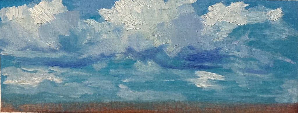 Ann Rossilli. April Sky. Oil 4.5″x12.25″ Not for Sale.