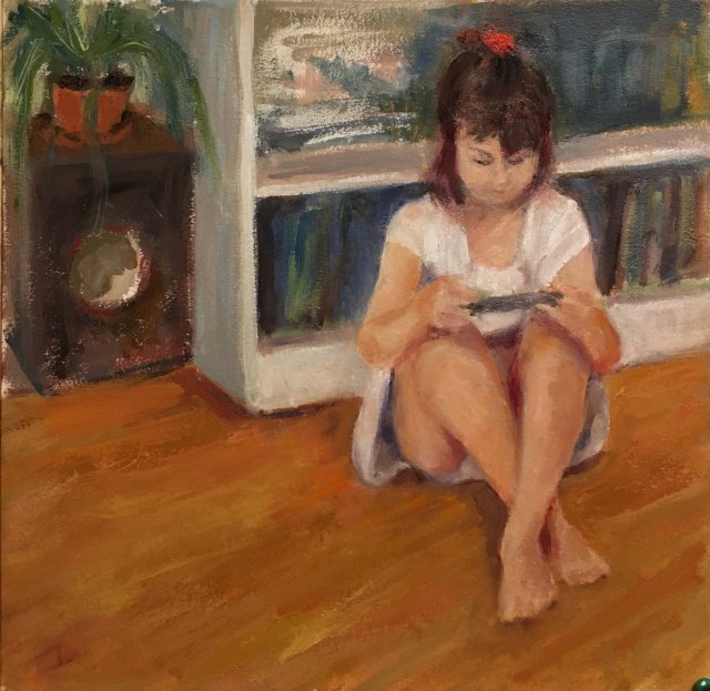 - Maureen Ward. Absorbed. Oil on linen. 12×12. $300.