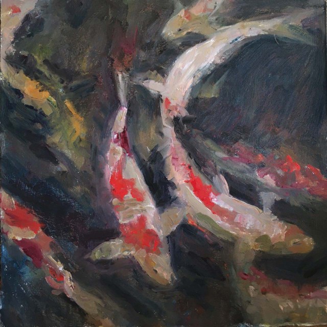 - KOI SCRUM. Oil. 12×12. $340, framed.