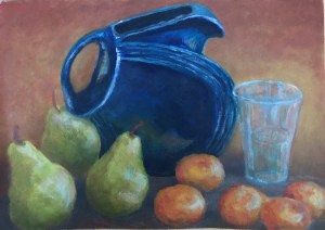 - PEACHES IN SHADE. Oil. 12×12. $300, framed.