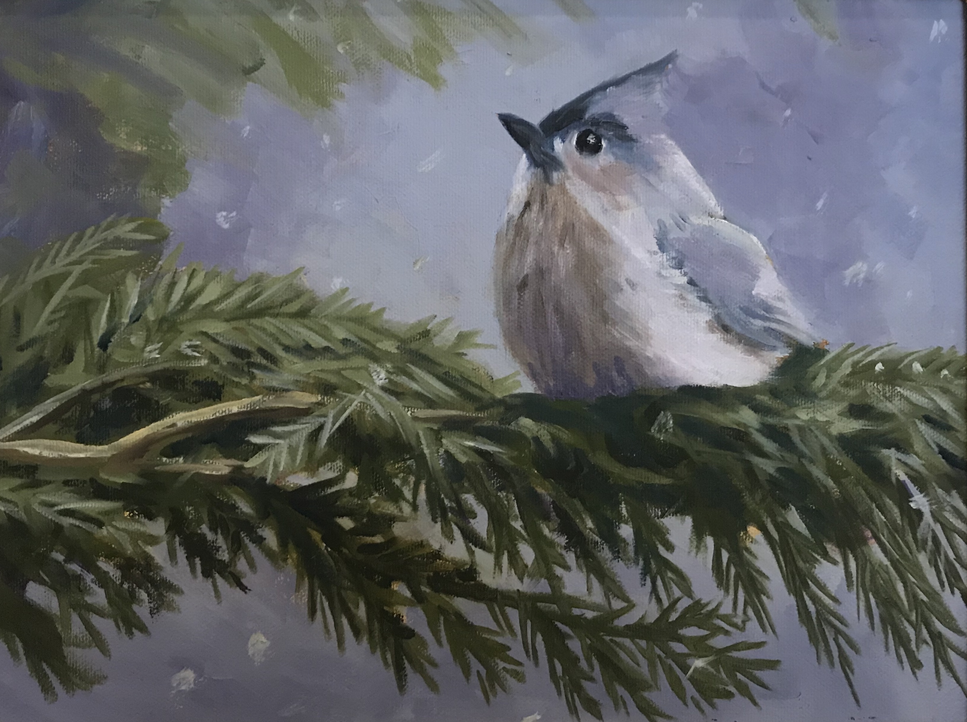 - TITMOUSE IN WINTER. Oil. 9×12. NFS.