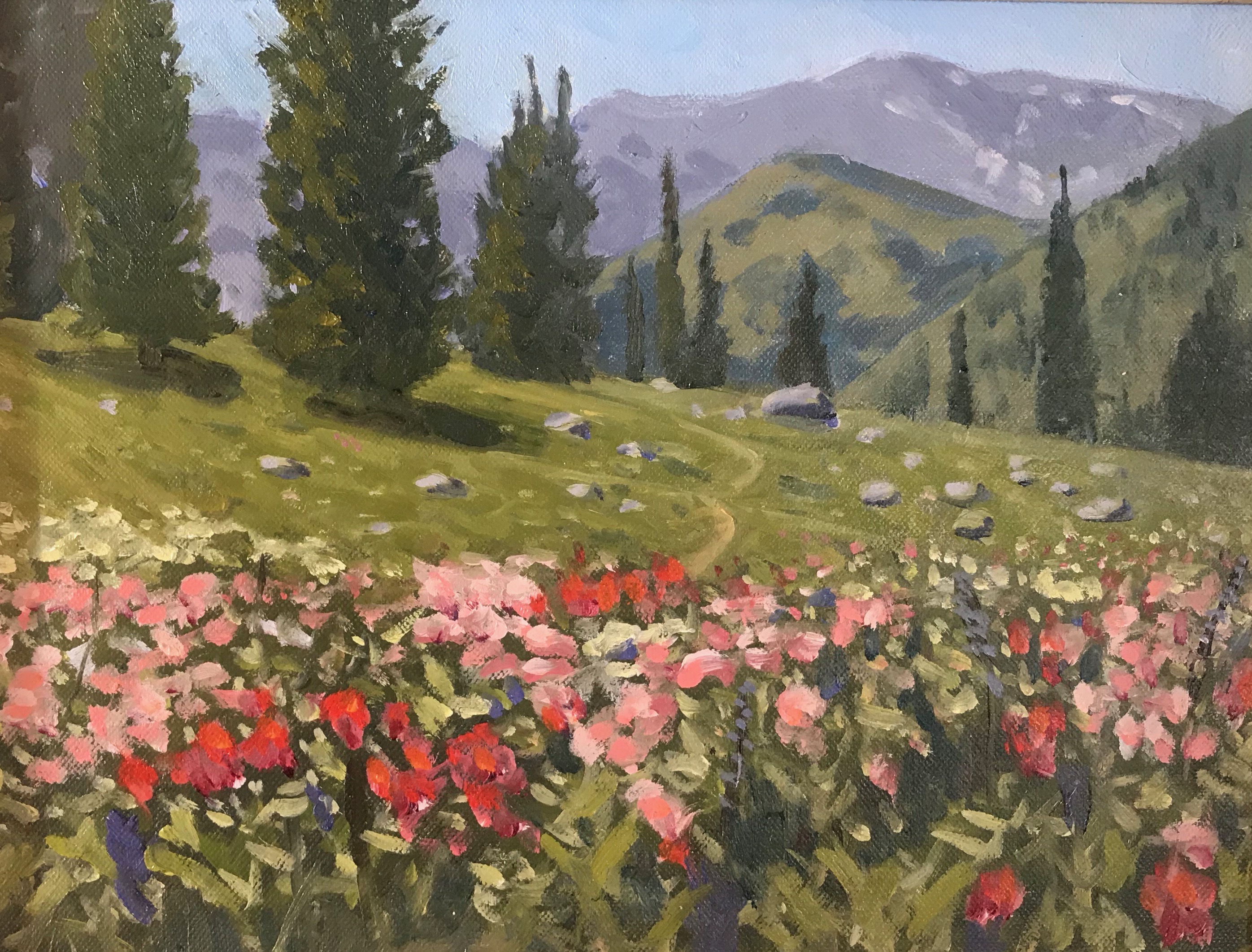 FLOWER CARPET, TETONS. Oil. 9×12. $350, framed.