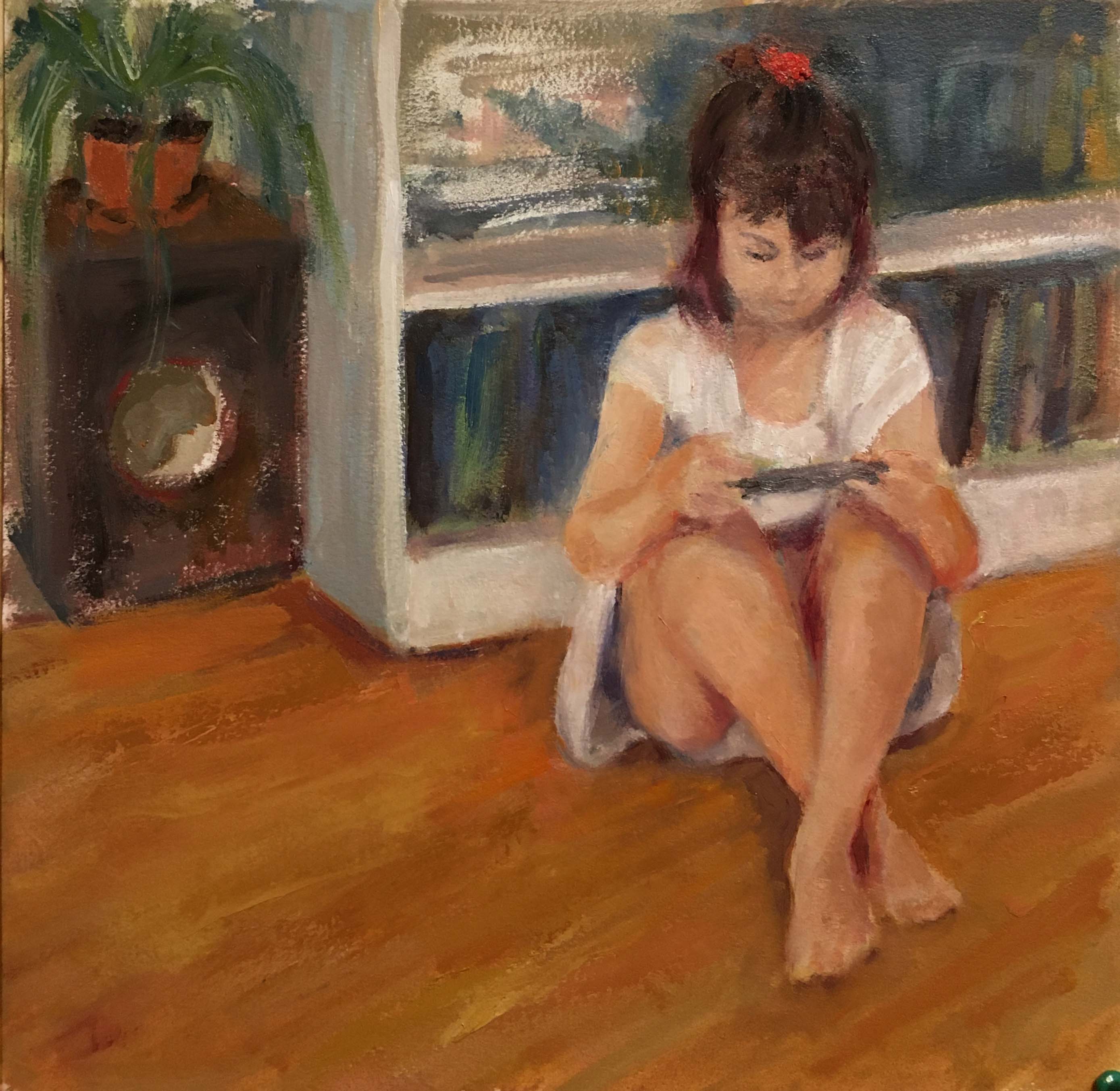 Maureen Ward. Absorbed. Oil on linen. 12×12. $300.