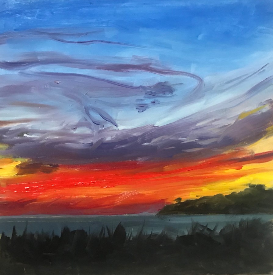 RED SKY AT NIGHT. Oil. 8×8. $300, framed.