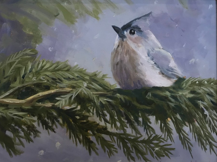 TITMOUSE IN WINTER. Oil. 9×12. NFS.